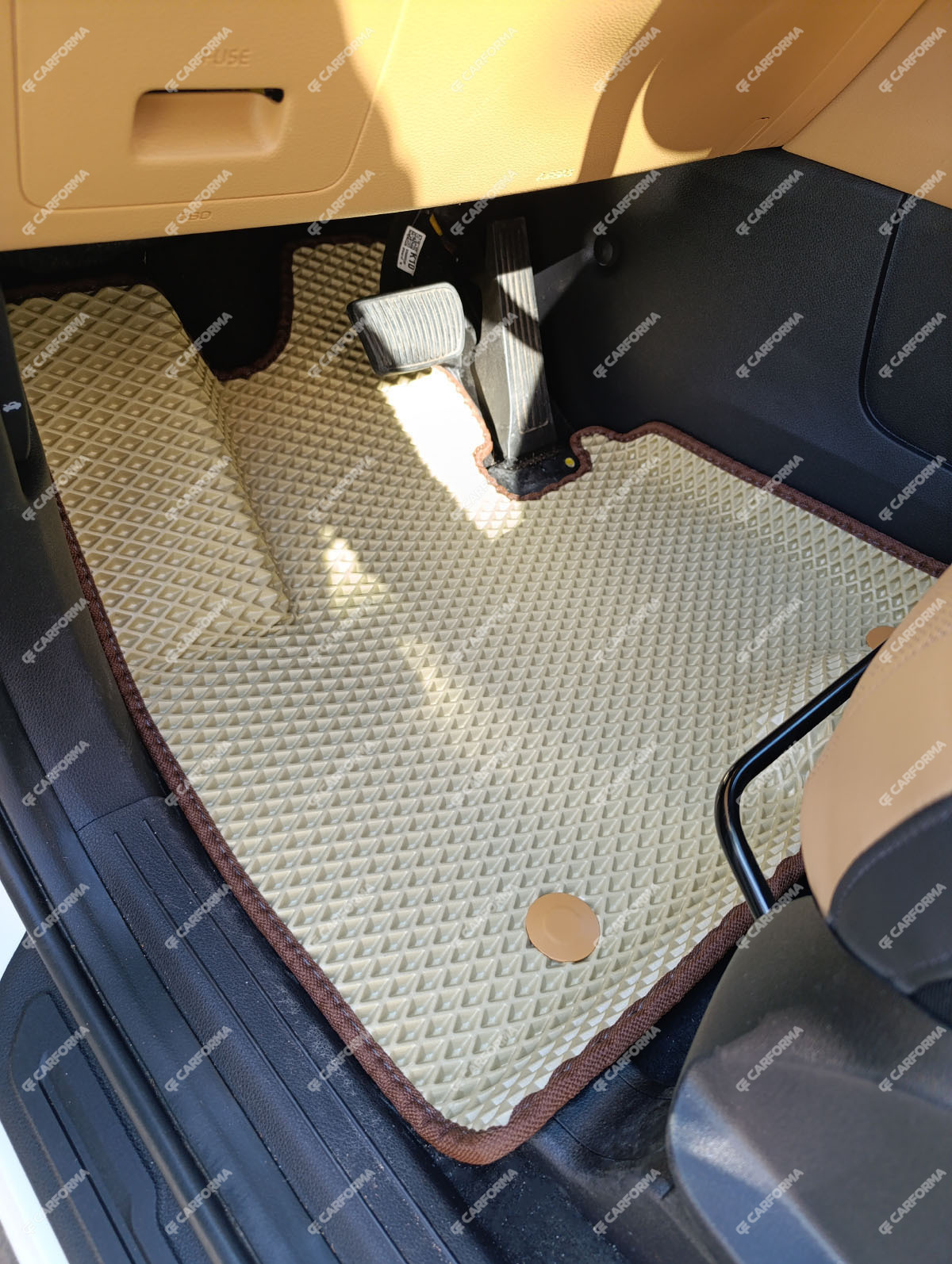 - Передние ковры полностью закрывают место под левую ногу водителя (зависит от авто)